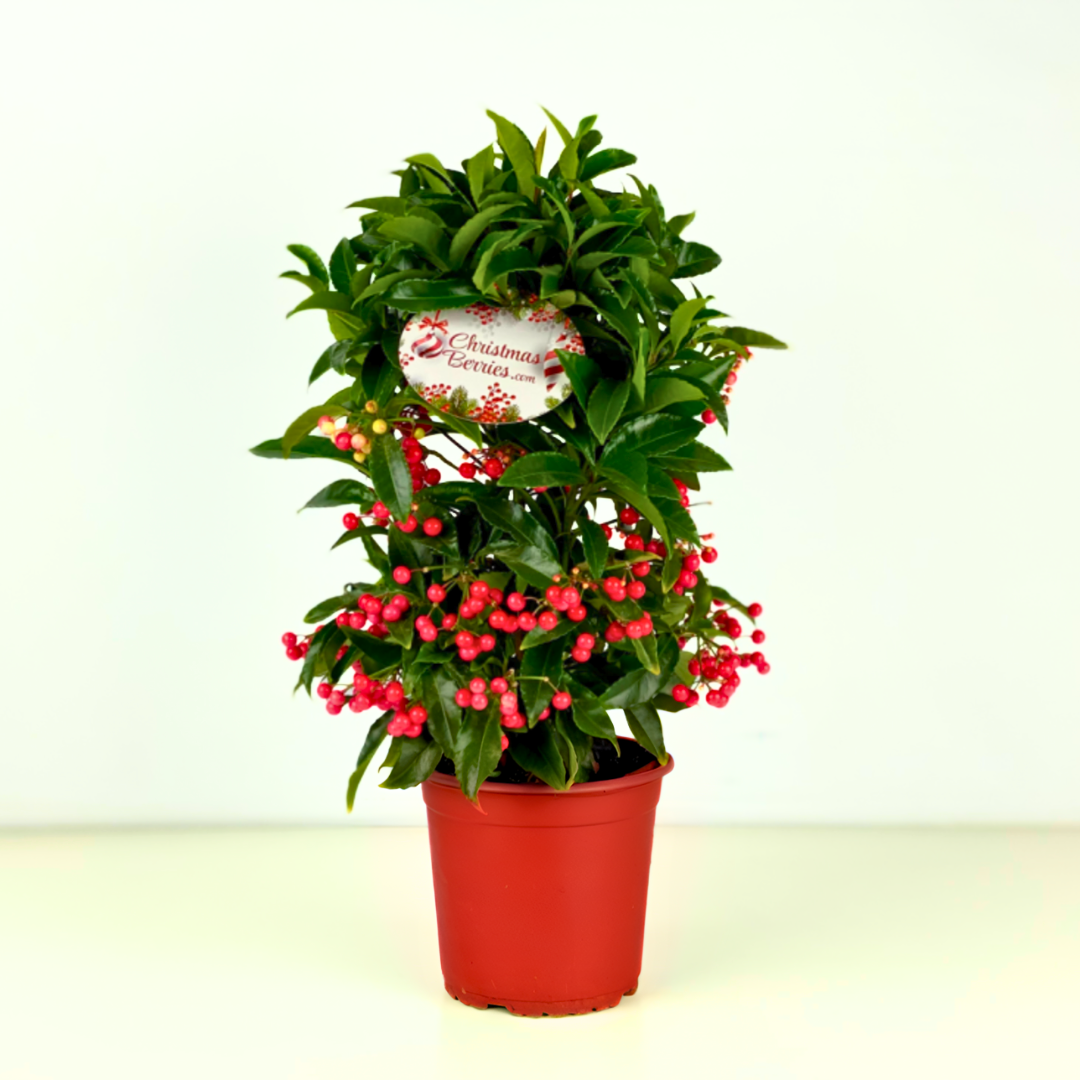 La Ardisia crenata, conocida como "Coral de Navidad", es una planta elegante y decorativa, famosa por sus llamativas bayas rojas brillantes que permanecen durante meses. Originaria de Asia, es ideal para interiores o jardines protegidos del frío extremo, aportando un toque festivo y sofisticado en invierno.